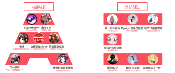 對比之下,B站要做年輕人的泛娛樂主流社區,把核心的二次元內容化為一個子集,同時為頭部UP主立人設引爆流量,擴大用戶基本盤。