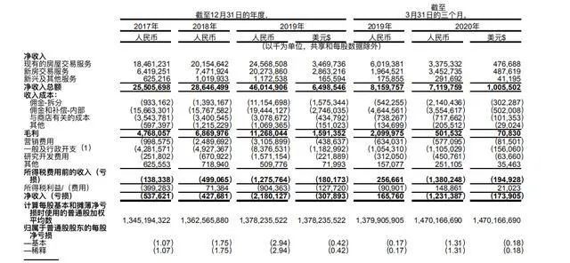 然而營收的增加所帶來的卻是連續(xù)三年時間的虧損,財報中2017年到2019年,貝殼營收分別為255億元、286億元、460億元,這個數(shù)值在2020Q1有所減少,為71億元。